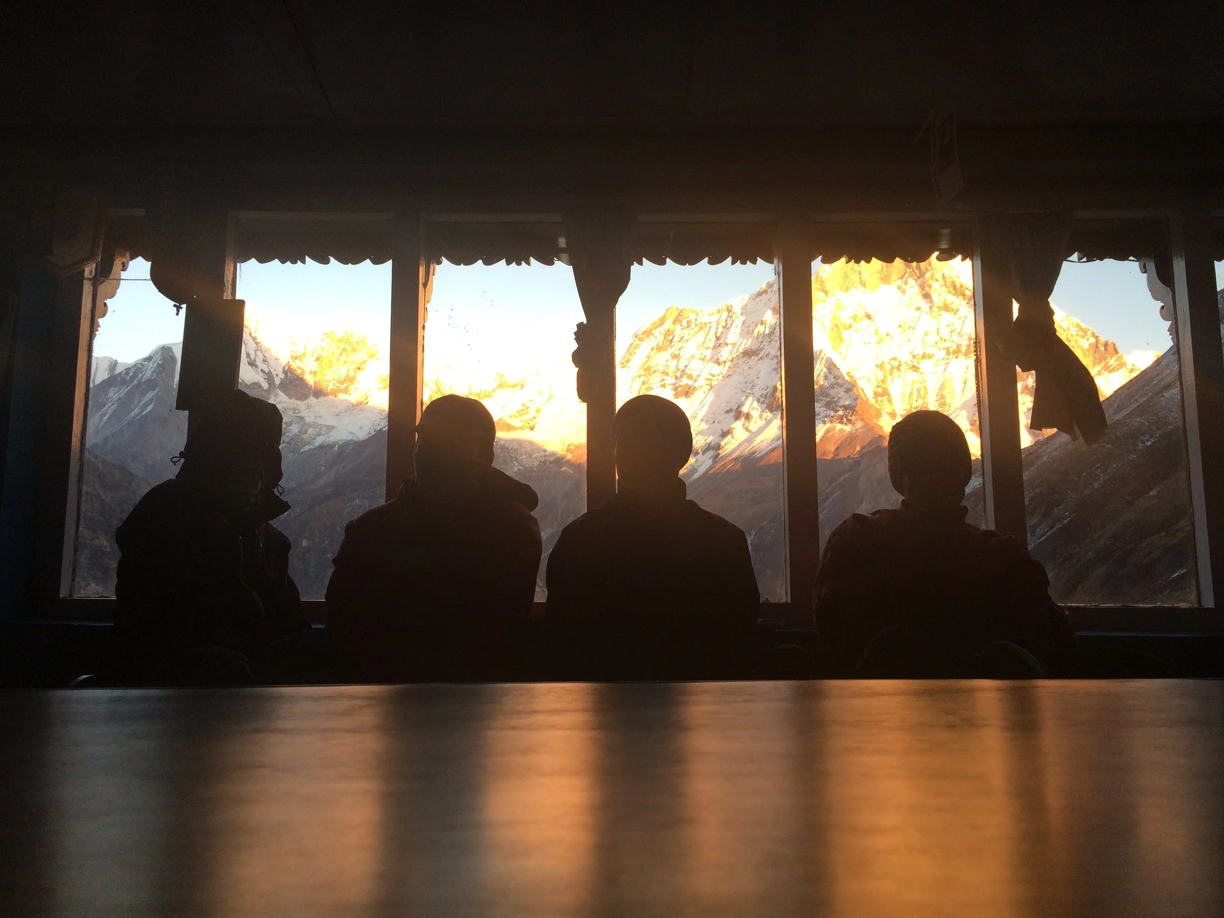 As we were going up, the weather was becoming fresher and the air less oxygenated, we had to drink a lot of garlic soup as a remedy for this, but we were having definitely a lot of fun. When we finally reached the last stop, Macchapucchre Base camp, right before Annapurna Base Camp, we took a small tea and kept going.